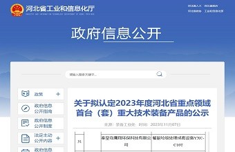 祝賀秦皇島鷹翔環保科技有限公司產品入選2023年度河北省重點領域首臺(套)重大技術裝備產品?